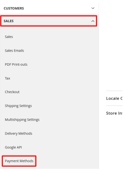 2. In the "Configurations" page, and from the “Sales” tab, select the "Payment Methods" menu item.
