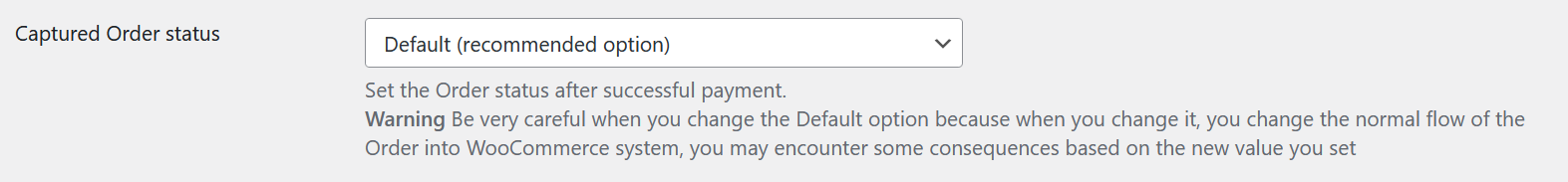 Then you will need to choose one of the listed statuses within the "Captured Order status" dropdown to configure this option.