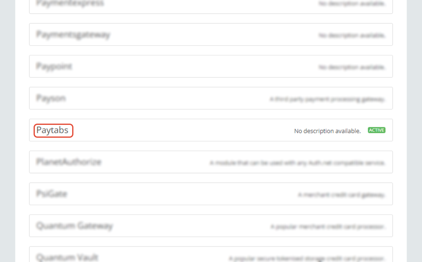 Then, select the Paytabs payment method from the listed available WHMCS payment methods.