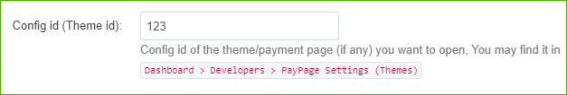 - Then you have to fill the theme id from your dashboard inside the Theme Config Id input as shown below: