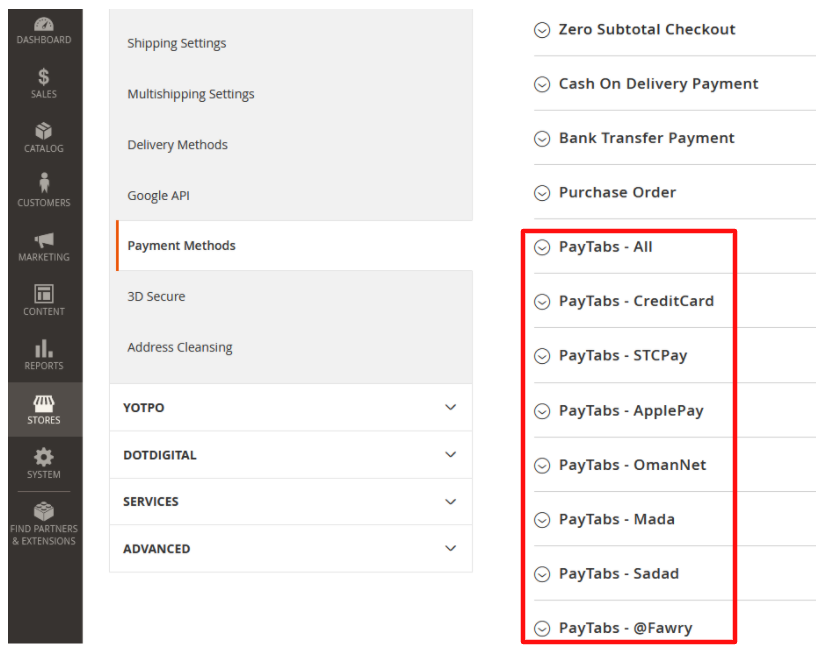 3. Expand the preferred payment method from the provided list by PayTabs of the supported payment methods available.